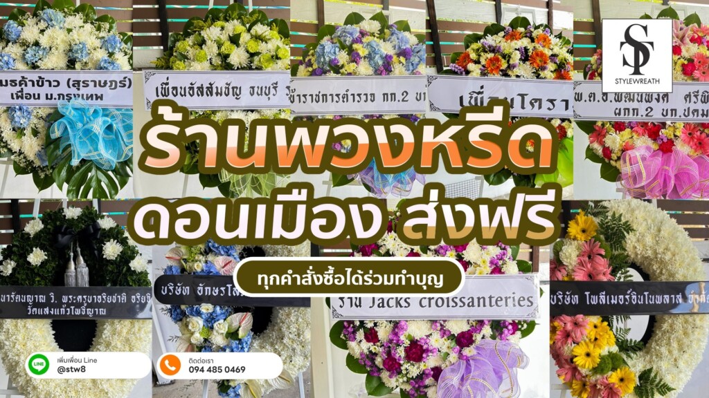 ร้านพวงหรีดดอนเมือง บริการดอกไม้ พวงหรีด ดอกไม้จัดงานศพ ครบวงจร สไตล์หรีด บริการพวงหรีด ดอกไม้จัดงานศพ ครบวงจร ร้านพวงหรีดออนไลน์ จัดส่งทั่วเขตกรุงเทพ และ ปริมณฑล ดีไซน์สวยหรู ราคาถูก พวงหรีดดอกไม้สด พวงหรีดพัดลม พวงหรีดต้นไม้ พวงหรีดของใช้ พวงหรีดสำเร็จรูป พวงหรีดปทุมธานี พวงหรีดนนทบุรี พวงหรีดกทม Wreath delivery to temple in Bangkok Thailand