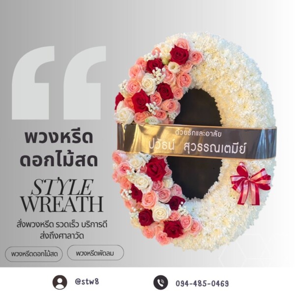 สไตล์หรีด เราใส่ใจและพิถีพิถันกับทุกออร์เดอร์ที่ได้รับ เพื่อให้ความรู้สึกที่เปี่ยมล้นของคุณ ส่งตรงถึงมือของผู้รับแบบไม่ตกหล่นเลยแม้แต่น้อย การมอบพวงหรีดให้กันในงานศพ เป็นมากกว่าการแสดงความอาลัยอาวรณ์ของการจากไปของผู้เสียชีวิต แต่ยังแสดงให้เห็นถึงความดีงาม และคุณูปการที่ท่านผู้วายชนม์ได้สร้างไว้แก่โลกใบนี้ตอนที่ยังมีชีวิตอยู่ จนก่อเกิดเป็นความรัก ความห่วงใยจากคนที่ยังอยู่ เพื่อส่งต่อแรงบุญให้พวกเขาได้ไปสู่ภพภูมิที่ดี