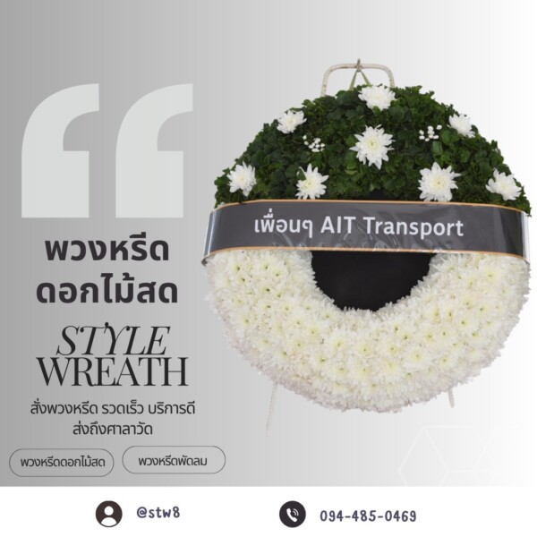 สไตล์หรีด เราใส่ใจและพิถีพิถันกับทุกออร์เดอร์ที่ได้รับ เพื่อให้ความรู้สึกที่เปี่ยมล้นของคุณ ส่งตรงถึงมือของผู้รับแบบไม่ตกหล่นเลยแม้แต่น้อย การมอบพวงหรีดให้กันในงานศพ เป็นมากกว่าการแสดงความอาลัยอาวรณ์ของการจากไปของผู้เสียชีวิต แต่ยังแสดงให้เห็นถึงความดีงาม และคุณูปการที่ท่านผู้วายชนม์ได้สร้างไว้แก่โลกใบนี้ตอนที่ยังมีชีวิตอยู่ จนก่อเกิดเป็นความรัก ความห่วงใยจากคนที่ยังอยู่ เพื่อส่งต่อแรงบุญให้พวกเขาได้ไปสู่ภพภูมิที่ดี